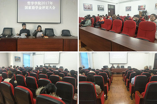 本次会议使同学们对本年度国家助学金金的评定工作有了更加详细的了解。2017年国家助学金评定工作开始以来,哲学学院始终本着公开、公平、公正、透明的原则,严格按照相关规定进行评评定,确保2017年国家助学金评定工作顺利完成。希望受助同学珍惜国家资助,努力学习、积极进取,在青春奋斗路途上实现人生理想。(哲学学院供稿)