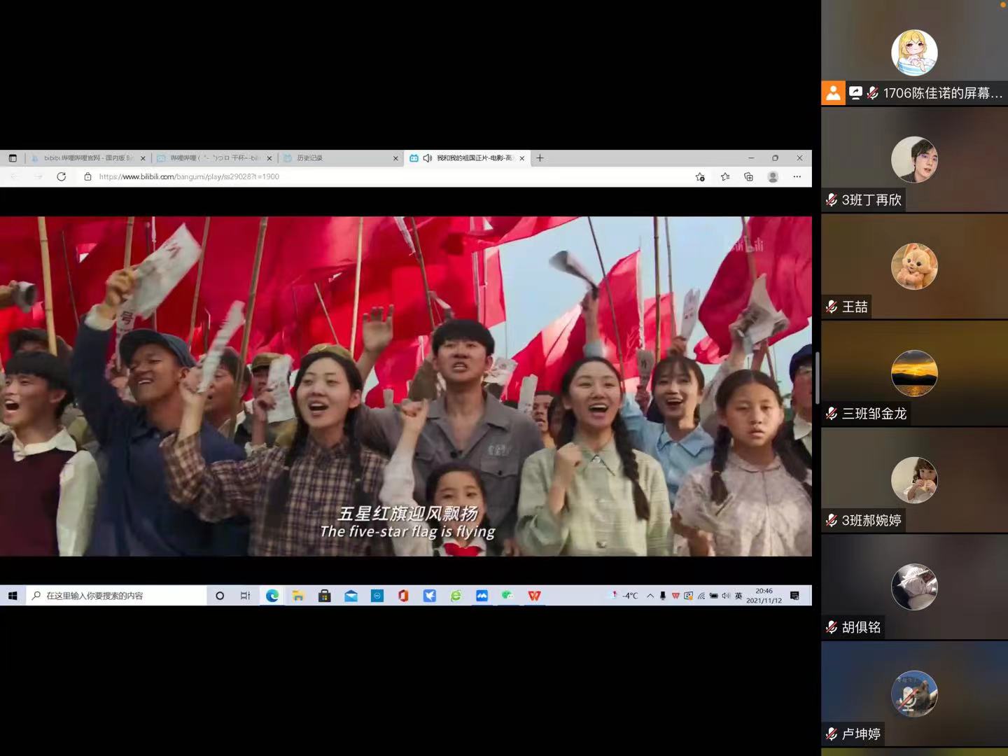 为了加强2021级哲学学生的爱国意识,让大家更好的感悟时代精神,2021年11月12日晚,哲学学院开展了线上观影活动,同学们共同观看了电影《我和我的祖国》的片段。
