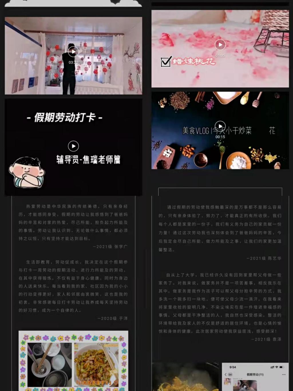 生活即教育,劳动促成长。在漫长的假期时间里,哲学学院组织全体同学们充分利用空闲时光,学习劳动楷模,争当劳动小能手。在保证安全的前提下,进行志愿服务或者打扫家务,帮助家里、社区进行劳动,我们发现各位同学都有着不错的劳动、动手能力,也有为家庭、社会做出贡献的热情和责任感,转眼间本次活动已经落下了帷幕,感谢各位同学的积极响应,本次活动获得了喜人的收获。