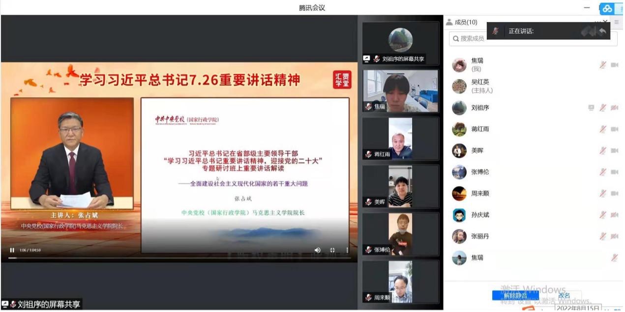 为深入学习贯彻习近平总书记在省部级主要领导干部专题研讨班上的重要讲话精神,认真学习《习近平谈治国理政》第四卷,更好地用习近平新时代中国特色社会主义思想统一思想、凝聚人心,以实际行动迎接党的二十大胜利召开。8月15日,哲学学院采取理论中心组扩大会议集中学习、教工党支部集中学习、教工党员自主学习以及学生党员自主学习有机结合的方式开展线上学习活动。哲学学院全体党员干部参加此活动。