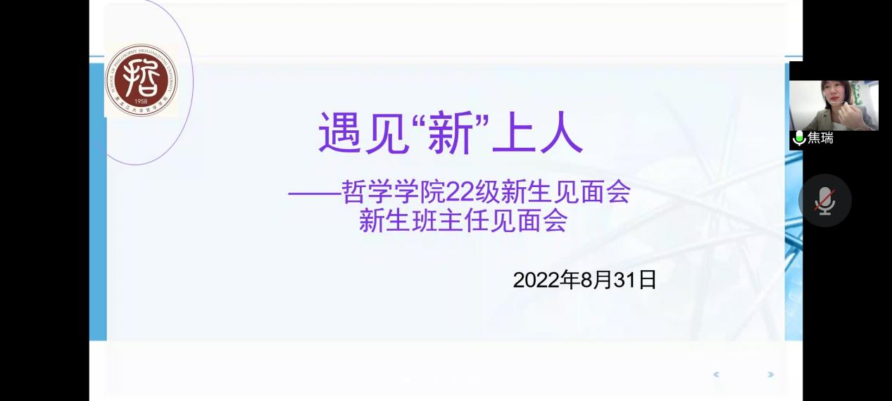 为了让同学们互相了解,使同学们更好地融入集体,从而形成和谐友爱的班级氛围,哲学学院于2022年8月31日下午在腾讯会议举行2022级新生见面会暨新生班主任见面会。2022级新生辅导员焦瑞老师,2022级学生班主任盖毓鑫、卢坤婷、陈秋凡以及2022级全体新生参加本次会议。