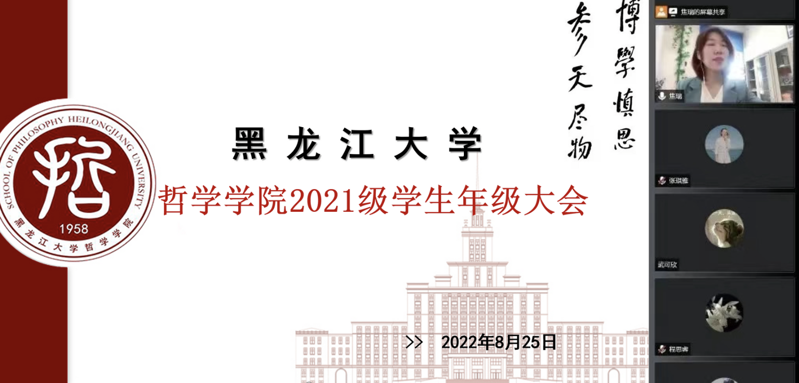 为深入了解学生日常动态,在思想、学习和生活等多方面为学生提供更为有力的保障,哲学学院分年级分层次召开线上学生思想、学习生活调研会,通过线上交流座谈会、线下谈心谈话相结合的形式,开展思想状况调研工作。
