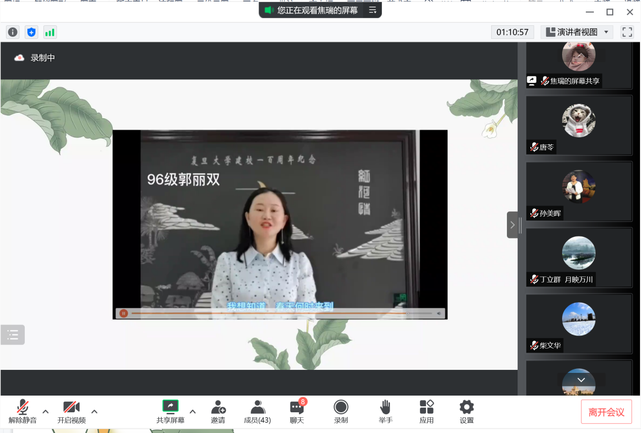 学院邀请资深教授代表丁立群、李楠明、柴文华进行老教师说“教”环节。三位教授结合自身教学实践经历,表达出对教师职业的无限哲思和青年教师的无尽期盼。屏幕前的与会者被他们无私奉的献精神深深打动,更加深刻的理解了“教师”这个身份所担负职责的重量,坚定了忠诚于党的教育事业,做好政治上的明白人和学生思想道德的引路人,教育引导学生成为堪当民族复兴大任的时代新人思想信念。