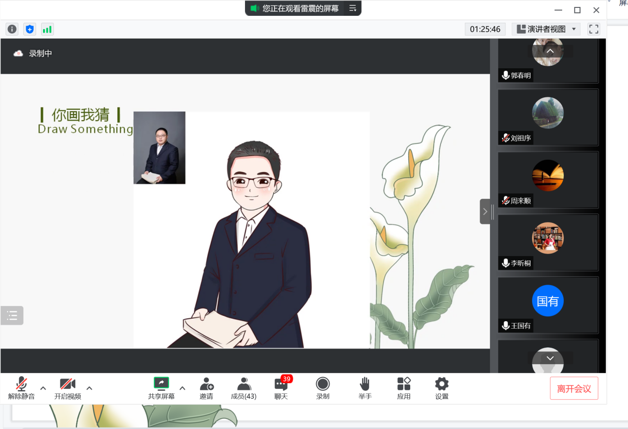 接下来,开始了游戏及抽奖环节,学院精心准备了“你画我猜”、“你说我猜”以及“幸运大抽奖”等游戏,教师们在游戏中形象特点和词语提示发挥急智、各展所长,在一片欢乐的气氛中展现了独属于哲学人的风采。本次活动还专门播放了哲学学院教师精彩瞬间混剪,看着视频中自己的点点滴滴,与会的老师们都不禁洋溢着笑容。节日里既丰富了老师的文化生活,增进了沟通交流,又提升了广大教职工的凝聚力和向心力,增强了对学院集体的认同感。