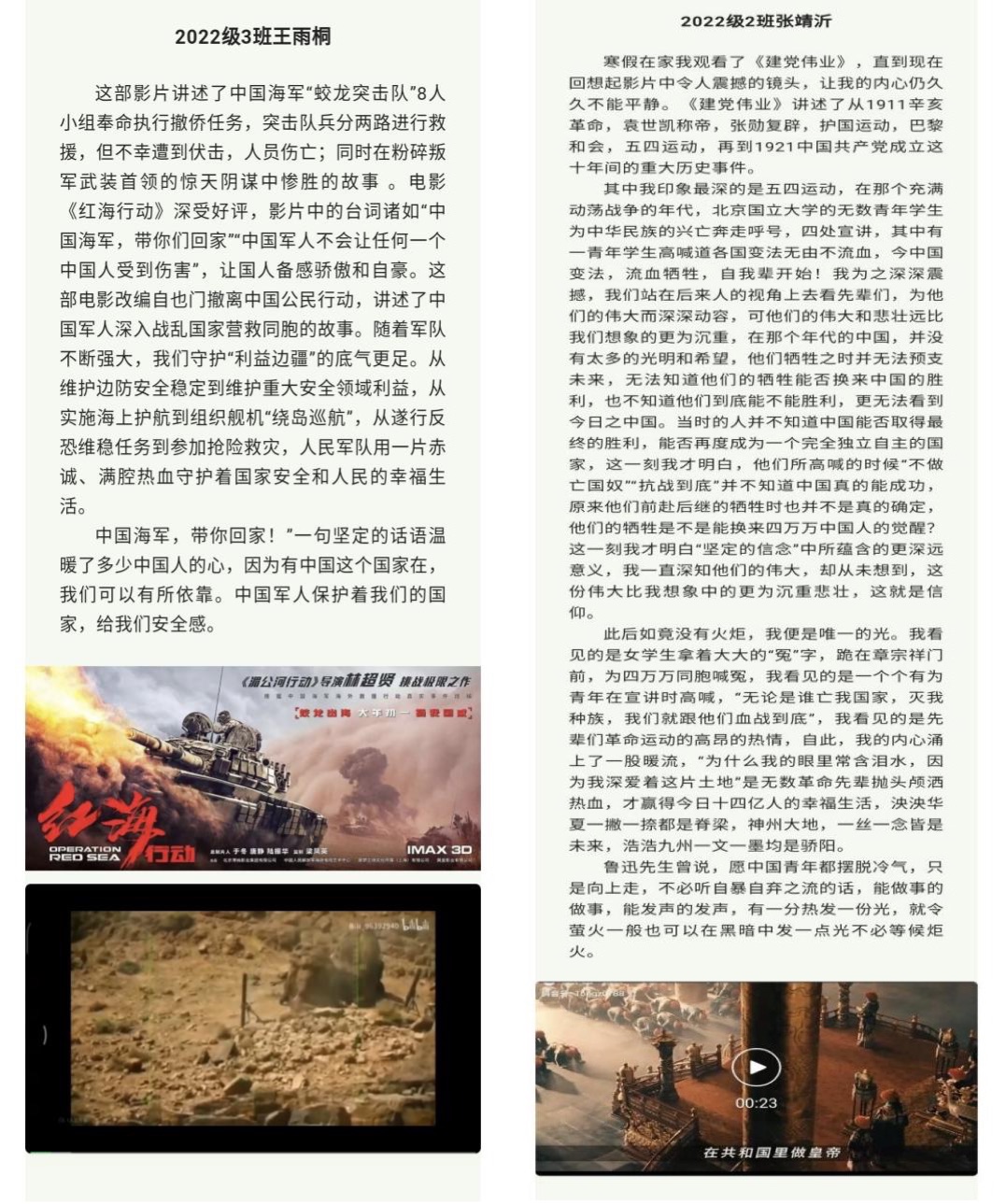 哲学学院在寒假期间开展了“打卡一份观影微感悟”活动,活动期间同学们踊跃投稿,用文字、视频等形式分享自己的观影体验和心得,引导哲学学院学生继续积极学习党的宝贵经验、传承百年红色底蕴。