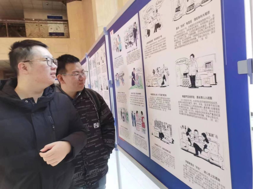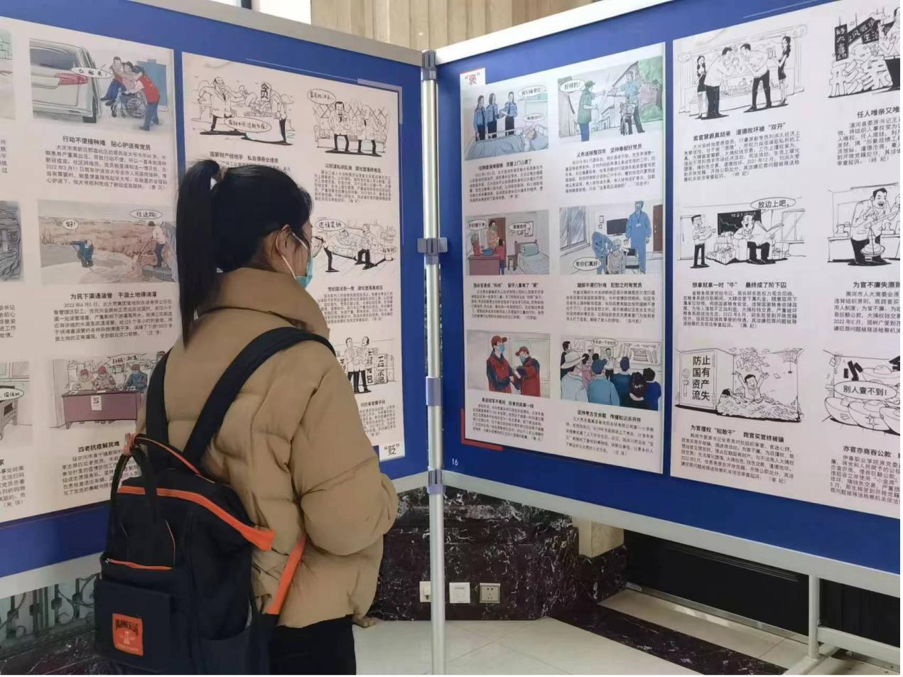 此次展览主题聚焦“礼赞新时代 廉心向未来”,通过漫画形式开展廉政文化宣传教育,我校艺术学院李奇副教授2021-2022年在《党的生活》杂志“褒贬录”系列创作的220幅作品以风趣幽默、讽刺夸张形式诠释廉政要义,歌颂党员干部坚守底线的操守,弘扬党员干部敬业奉献的精神,表现党员干部清廉友爱的家风传承,以大家喜闻乐见的形式大力营造风清气正的良好社会氛围,主旨鲜明,立意高深。漫画的表现形式形象直观,令参观人员印象深刻,深受教育和启发,纷纷表示要继续严格要求自己,自觉涵养正气,培树清廉之风,严格遵规守纪,堂堂正正做人,干干净净做事,始终做到知敬畏、存戒惧、守底线。