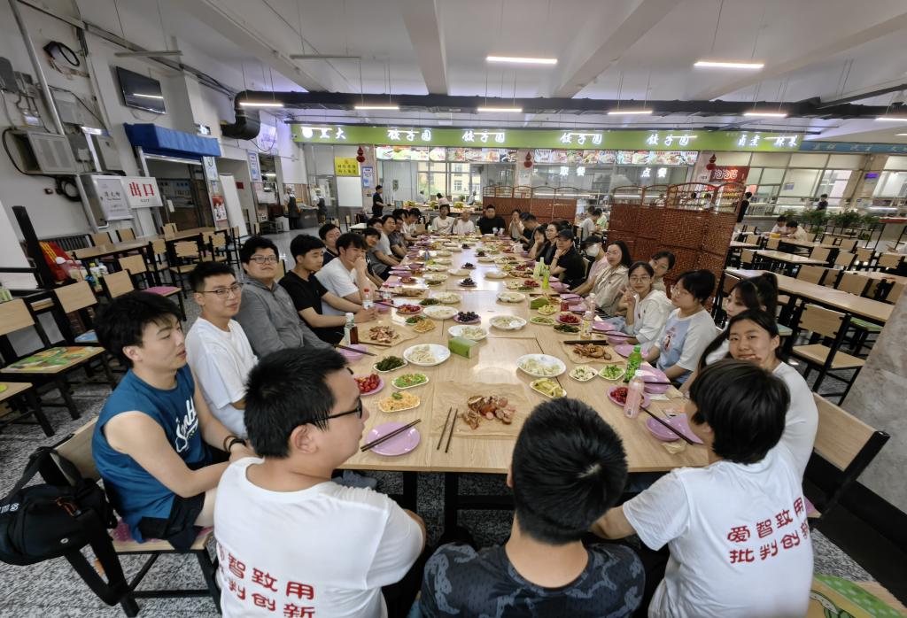 似火六月,盛夏时节,2023届毕业季的气氛也走向了高潮。为深入推进毕业生远航计划,落实毕业生“十五个一”的活动要求,加强对毕业生的思想教育和价值引领,也为了在离校之际为毕业生送上学院全体师生的关怀,哲学学院于2023年6月20日下午在A食堂三楼饺子园举办了毕业生饺子宴。学院党总支副书记张丽丹老师、辅导员孙庆斌老师、辅导员张博伦老师以及2023届在校毕业生参加了饺子宴。