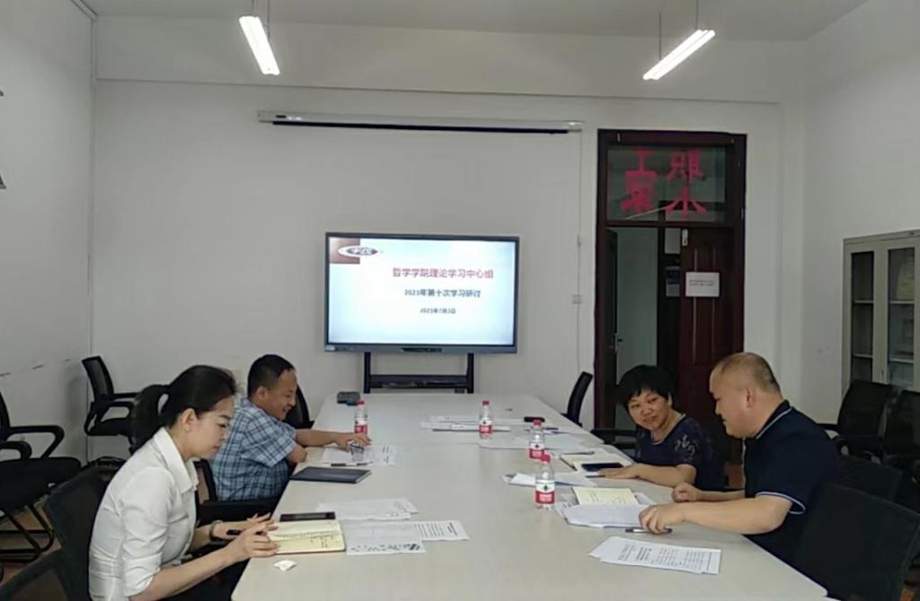 为进一步推进学院主题教育暨“工作落实年”活动见行见效,7月3日上午10时,哲学学院党总支召开理论学习中心组第十次专题学习会,全体与会人员就《习近平在文化传承发展座谈会上强调担负起新的文化使命努力建设中华民族现代文明》和《习近平在中共中央政治局第五次集体学习时强调加快建设教育强国为中华民族伟大复兴提供有力支撑》进行认真研读和讨论。会议由学院党总支书记孙美晖主持,学院理论中心组成员参加。