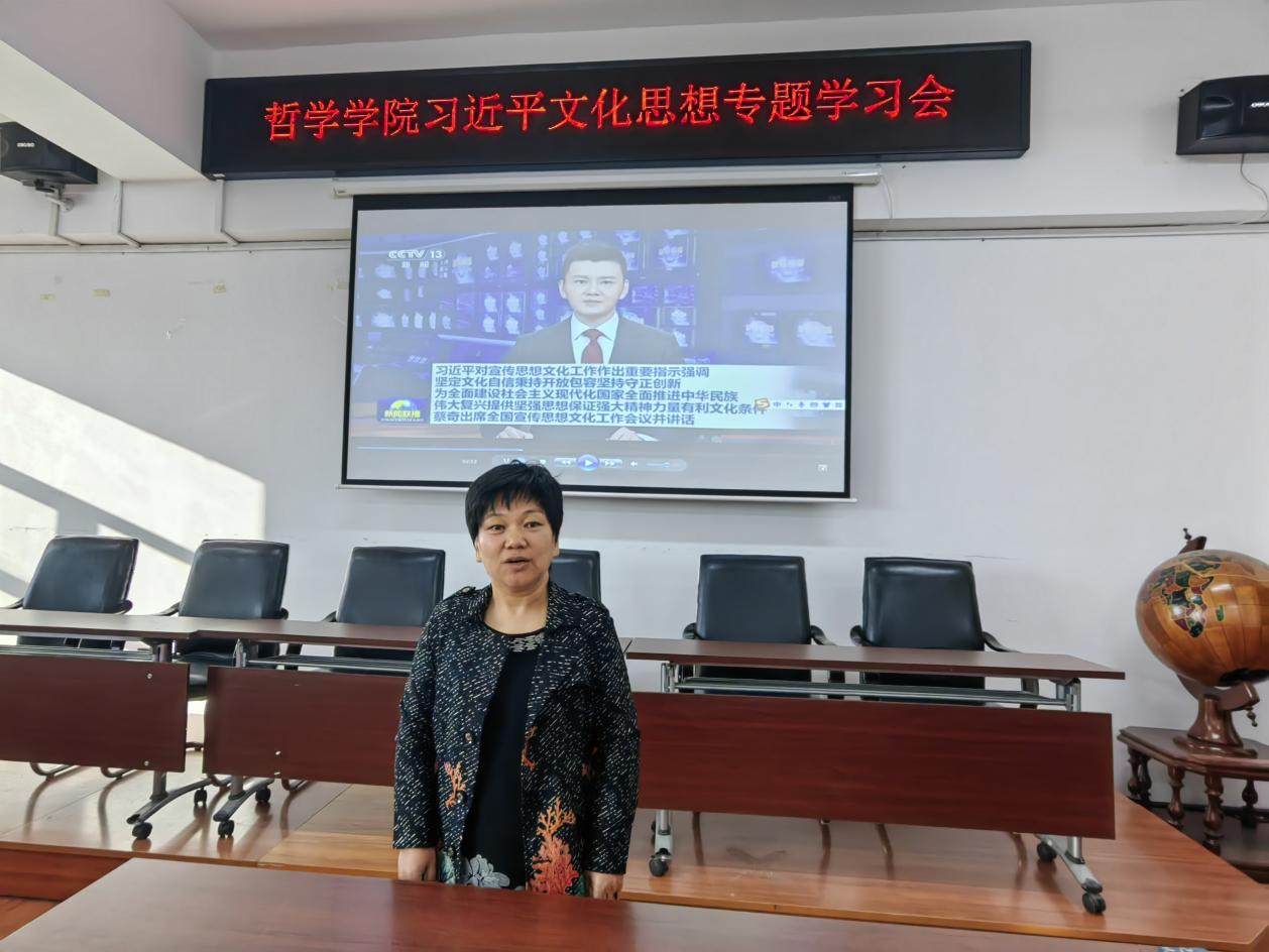 全国宣传思想文化工作会议10月7日至8日在北京召开,会上传达了习近平总书记对宣传思想文化工作作出的重要指示,首次提出了习近平文化思想。为切实传达学习习近平总书记对宣传思想文化工作的重要指示和全国宣传思想文化工作会议精神,10月16日,哲学学院于汇文楼937室召开习近平文化思想专题学习会,哲学学院全体教职工参会,会议由哲学学院党总支书记孙美晖主持。