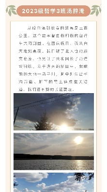 为庆祝中华人民共和国成立74周年,深入学习贯彻习近平总书记在黑龙江省视察和主持召开新时代推动东北全面振兴座谈会时的重要讲话重要指示精神,贯彻落实“学生工作部:关于开展‘我和我的祖国’宣传教育活动的通知”,教育引导青年学生弘扬爱国主义精神,哲学学院于2023年9月27日至10月15日期间开展“我和我的祖国”主题宣传教育活动。