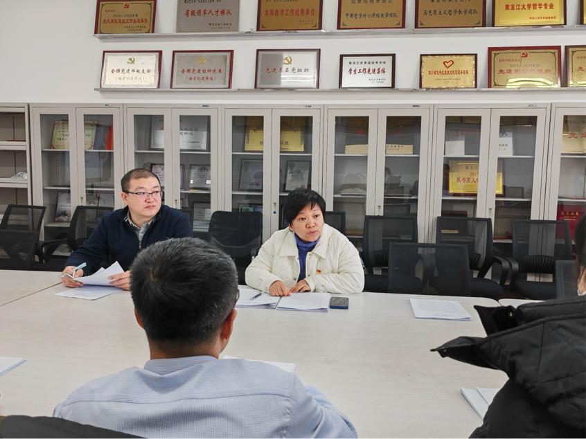 为深入贯彻落实习近平总书记关于党的建设的重要思想和视察黑龙江期间重要讲话重要指示精神,扎实推进深化能力作风建设“工作落实年”活动,落实基层党建工作重点任务,科学谋划新一年基层党建工作重点,提升基层党建的质量和标准,按照《关于开展欧亿体育·(中国)官方网站2023年度党组织书记抓基层党建述职评议考核的通知》的要求,哲学学院于12月27日上午在汇文楼922会议室召开党支部书记述职评议大会。学院党总支书记孙美晖主持会议,学院党总支委员、各党支部书记、师生党员代表参加了本次会议。