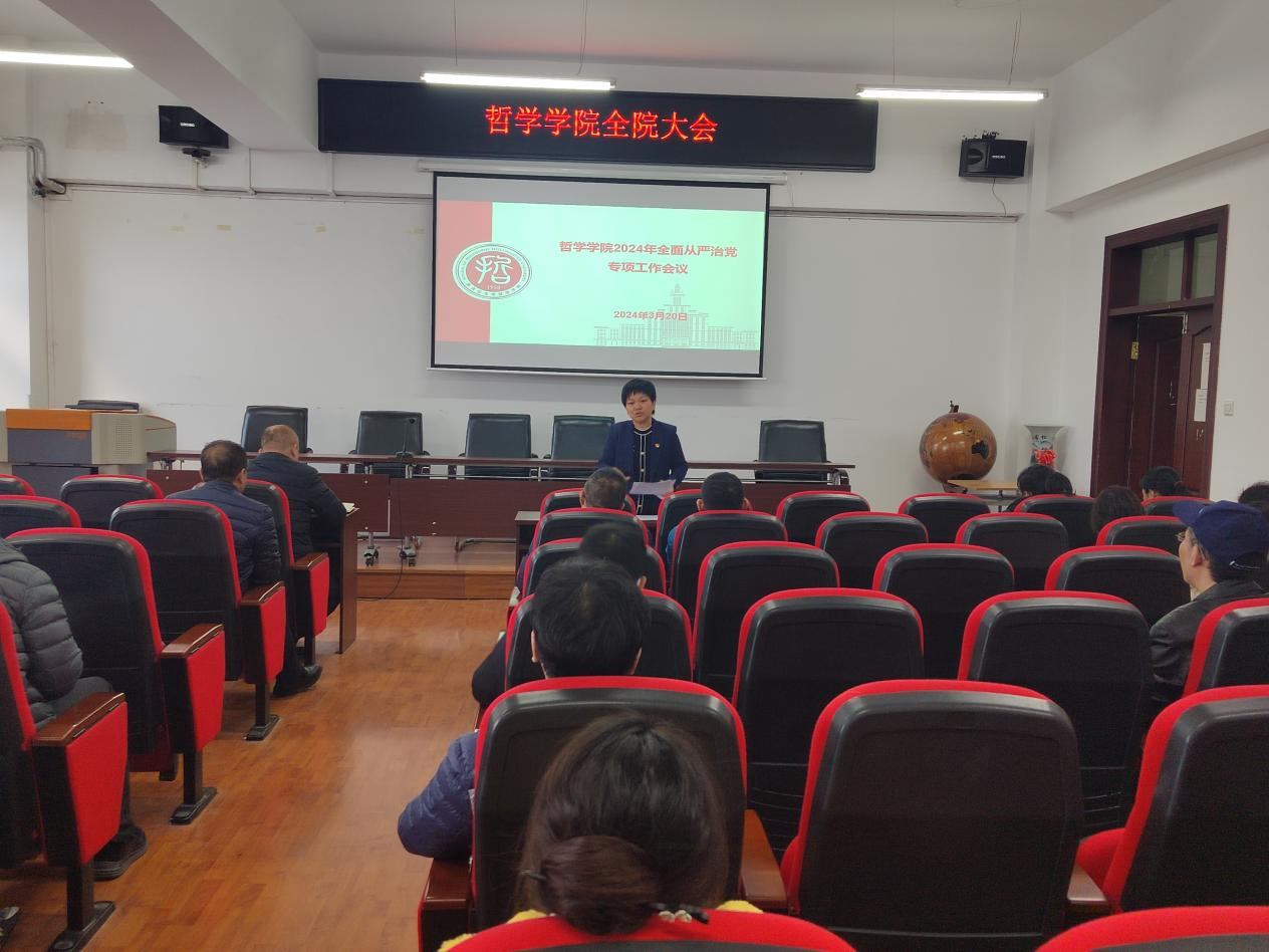 3月20日,哲学学院召开2024年全面从严治党工作专项工作会议,深入学习贯彻习近平总书记关于党的自我革命的重要思想及党的二十大、二十届二中全会、二十届中央纪委三次全会精神。会议聚焦高质量发展,坚持问题导向,纵深推进全面从严治党在全院范围内落实落地,引领保障学院改革发展行稳致远。哲学学院全体教职工参加本次会议,会议由学院党总支书记孙美晖主持并领学。
