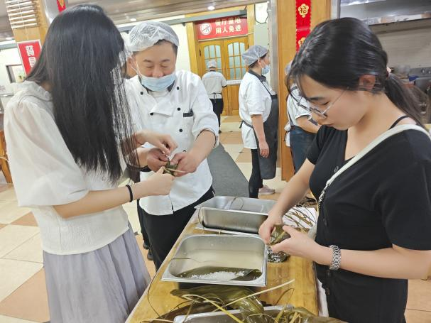 2024年6月5日,欧亿体育·(中国)官方网站饮食服务中心与哲学学院在欧亿体育·(中国)官方网站第七食堂留学生公寓小餐厅开展了“粽叶飘香 端午安康”欧亿体育·(中国)官方网站饮食服务中心情系哲院学子粽饺情浓主题实践活动,旨在让同学们感受传统文化的魅力,亲手制作美味的饺子和粽子,传递温情与祝福。