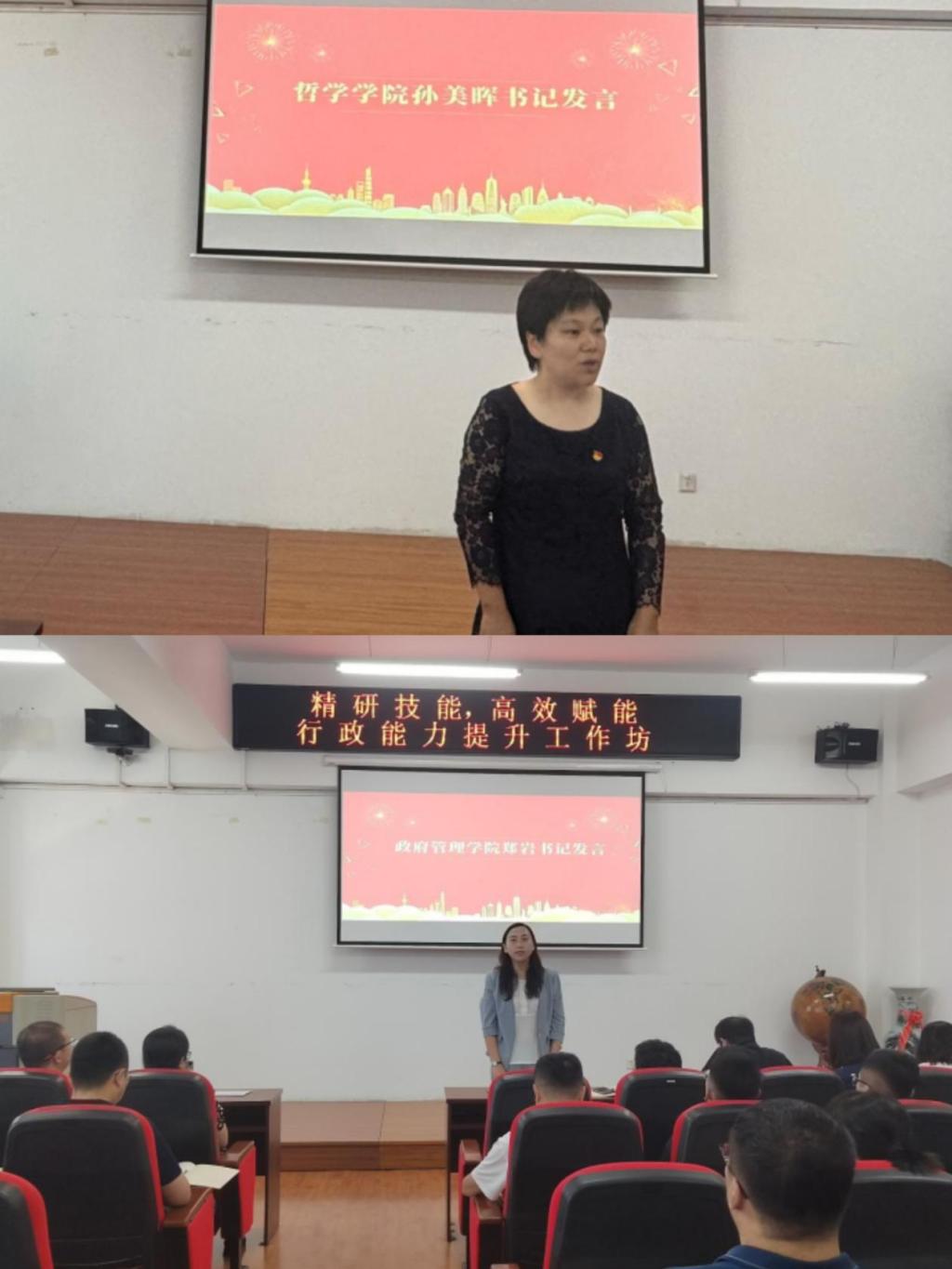 哲学学院党总支书记孙美晖和政府管理学院党委书记郑岩分别发表讲话,强调此次工作坊是一次难得的学习与交流契机,希望大家能够积极参与其中,将所学所悟转化为实际行动,在日常工作中展现出更高的专业素养和创新精神。