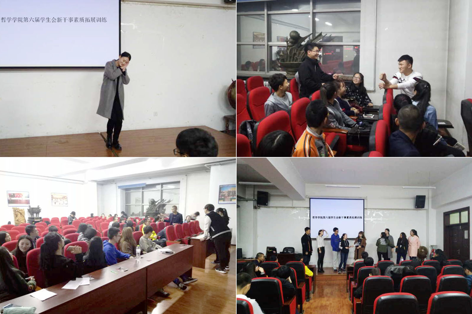 为了增进学生会新晋干事之间的相互了解,加强交流与沟通,培养和提高新晋干事的团队意识和综合素质,2016年10月16日18时30分,哲学学院第六届学生会干事素质拓展训练于汇文楼937室顺利开展。本次素质拓展训练由学生会体育部主办,学生会全体成员参加了本次训练。