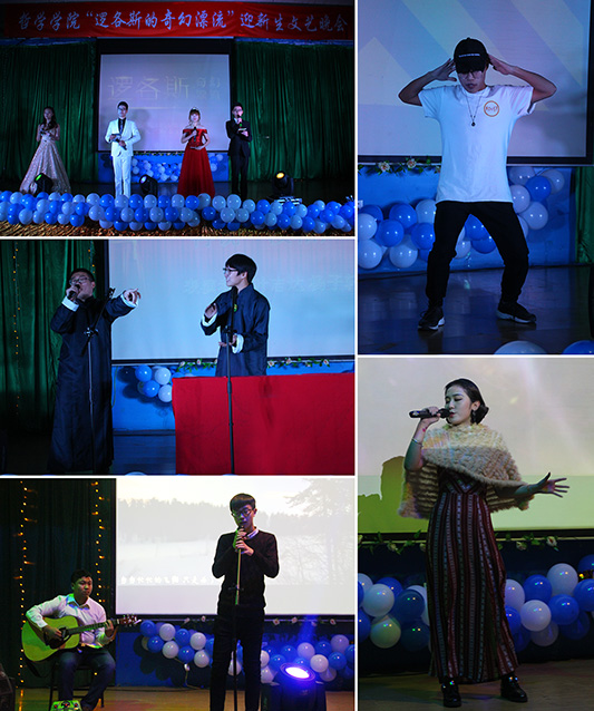 为了欢迎2016级新生的到来,展现当代青年学子的青春风采,2016年12月2日18时30分,哲学学院2016级迎新生文艺晚会“逻各斯的奇幻漂流”于3号楼地下报告厅成功举办。哲学学院党总支书记孙庆斌、院务秘书王秋、2016级新生班主任周来顺老师、吕伟老师、周晓莹老师、郭春明老师、管小其老师以及各兄弟学院学生会、青协主席团成员等领导和嘉宾出席了本场晚会。哲学学院全体同学观看了本场晚会。