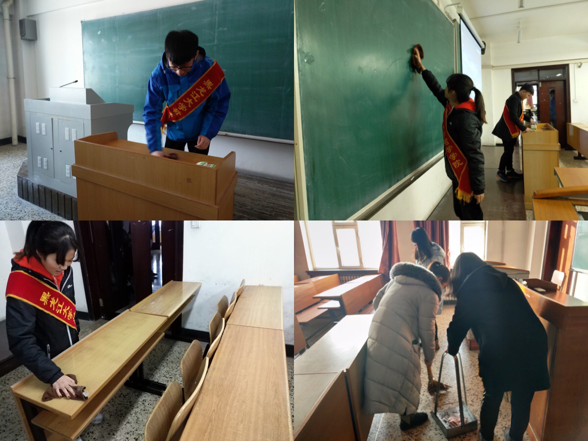 寒假结束,迎来崭新的春季学期。为了给同学们营造良好的学习环境,尽快适应新学期的学习生活,同时积极响应学校深入开展学雷锋活动的号召,进一步弘扬雷锋精神,2017年2月27日早7时,哲学学院青协志愿者们在同学们上课之前分别来到汇文楼427、477、555等多个教室进行了志愿清扫活动。