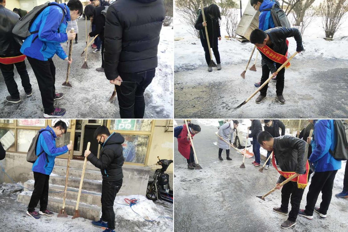为了进一步提升学生奉献精神和服务意识,切实用行动学习、践行雷锋精神,美化校园环境,响应学校“学雷锋月”的活动号召,2017年3月9日下午14时,哲学学院青年志愿者协会于黑大家属区开展铲冰活动,协会全体成员参加了本次活动。