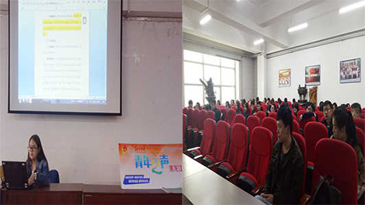 会上,学院创新创业训练项目联络员黄影老师向同学们介绍了大学生创新创业训练项目的相关政策,鼓励同学们从专业兴趣出发,结合项目指导选题,积极申报创新创业训练项目,不断提高自我专业修养,锻炼自我,超越自我。随后,学院学生会科创部部长郑乔同学就项目的种类、范围、申报方式和具体的程序、步骤、资金支持等关键部分内容进行了详细的讲解。通过她的讲解,同学们对创新创业项目的申报有了深入细致的了解。重点强调了申报的时间节点和申报表的填写问题,提醒同学们要注意细节,不出差错。最后,黄老师结合以往经验和范例针对同学们关心和疑惑的问题一一进行了回答。