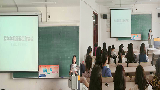 为了响应教育部办公厅关于进一步做好高校学生参军入伍工作的通知,动员当代大学生加入士兵的队伍中去,加强同学们保卫国家的意识,根据《欧亿体育·(中国)官方网站2017年大学生征兵工作实施方案》部署安排,2017年 5月20日,哲学学院2017年征兵工作动员大会顺利召开,哲学学院团委书记、辅导员黄影老师主持了会议,哲学学院部分同学参加了本次大会。