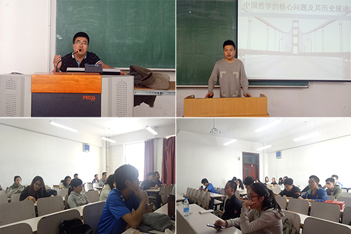 论坛伊始,为明确本次论述问题的框架结构,使学生理解思路更加清晰,王秋老师对本次论坛的主题进行了概括性地阐述。王秋老师讲到,中国哲学所研究的核心问题就是天人关系问题,中国哲学中的“天人”问题有广狭二义。广义地说,“天人”即宇宙、人生,实际上包括了中国古代哲学讨论的全部问题,这些问题按照中国古代哲学的内在结构,可区分为天道、人道和知天人之道三大部分。狭义地说,“天人”指“天人关系”,即所谓“天人之际”。其具体含义,大体可析而为宇宙与人类、人类社会的关系。而其历史演进可分为三句话:第一,长期以天人合一来指导主客关系。第二,长期以研究人伦道德转而注重自然。第三,长期以“天理”压人转为反对“天理”。王秋老师强调到,在中国哲学中,天人关系论随着时代的演变,形态和基本命题也出现了变化,展现了特殊的哲学问题意识和人与自然的关系。但中国哲学思想始终都表现出对人的生命价值关怀,对人生崇高境界的追求,对人性修养的重视,和对生命价值实现途径独特心态的追求。最后,王秋老师强调,随着历史的发展,虽然许多陈旧的思想已经不适应文化发展潮流,但我们仍需继承发展中国哲学之精华,崇尚弘毅,注重自身修养,追求力行的进取型人生道路。