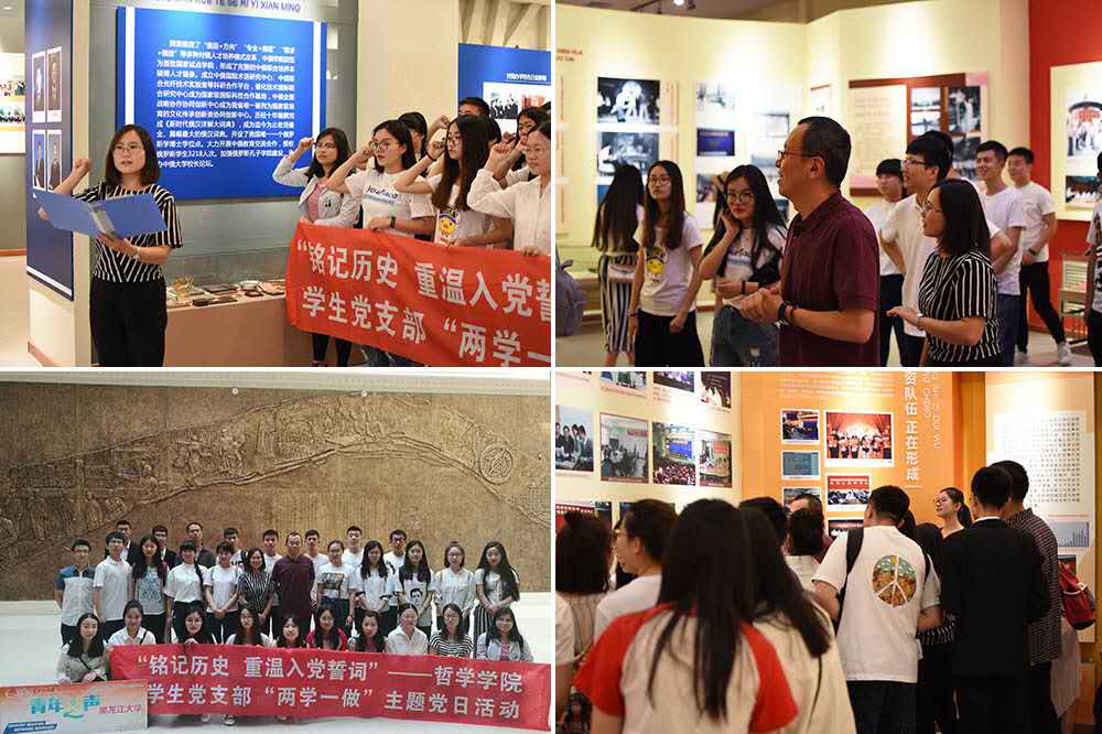 学生党员在讲解员的带领下参观了校史馆,对学校的发展变迁有了更加深入的了解,学校的光辉历史让同学们倍感骄傲,更加坚定了努力学习为母校增光的决心。随后在庄严的国歌中宣誓活动正式开始,全体党员在黄老师的带领下,举起右拳,面对鲜红的党旗重温誓词。在这个神圣而庄严的时刻之后,由2013级毕业生党员代表崔镇同学发言,他讲到,学生党员时刻都要已一名合格党员的标准来严格要求自己,无论是在学校,还是以后到各自的工作岗位上,都要严以律己,做一名合格的共产党员。接下来,哲学学院党总支书记孙庆斌对学生党员提出了殷切的希望。孙书记强调:组织上入党一生一次,思想上入党一生一世。此次活动是学生党员政治生活中一次难忘的、有意义的活动。希望各位党员能够坚定理想信念,牢记党的宗旨,永葆党员本色,肩负起时代赋予的责任和使命,在实际的工作与学习中牢记自己的党员身份,切实发挥党员的先锋模范作用,在不断追求中实现人生价值和理想。最后,在庄严的国际歌声中,全体党员合影留念,本次活动圆满结束。