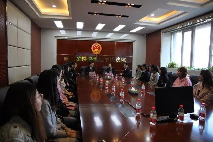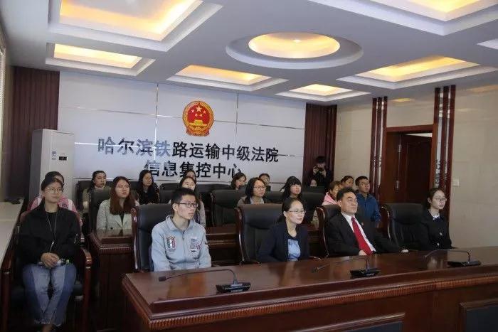 参观过程中,哈尔滨铁路运输中级法院党组成员、政治部主任郭云祥同志向同学们简要介绍了法院的主要工作和近年来的改革发展情况。在郭主任的带领下,同学们先后参观了信息集控中心、科技法庭、荣誉室、文化长廊、诉讼服务中心、执行指挥中心和信访工作室,一步步揭开了法院的神秘面纱,使同学们对法庭和法官的工作有了一个更加直观、真实的了解,激发了他们学法用法的兴趣。通过讲解与交流,同学们进一步了解了公民的基本权利和义务,感受到了日新月异的科学技术为案件审理、执行带来的便捷,为公平正义的维护带来的监督与保障,为老百姓的服务带来的便利。