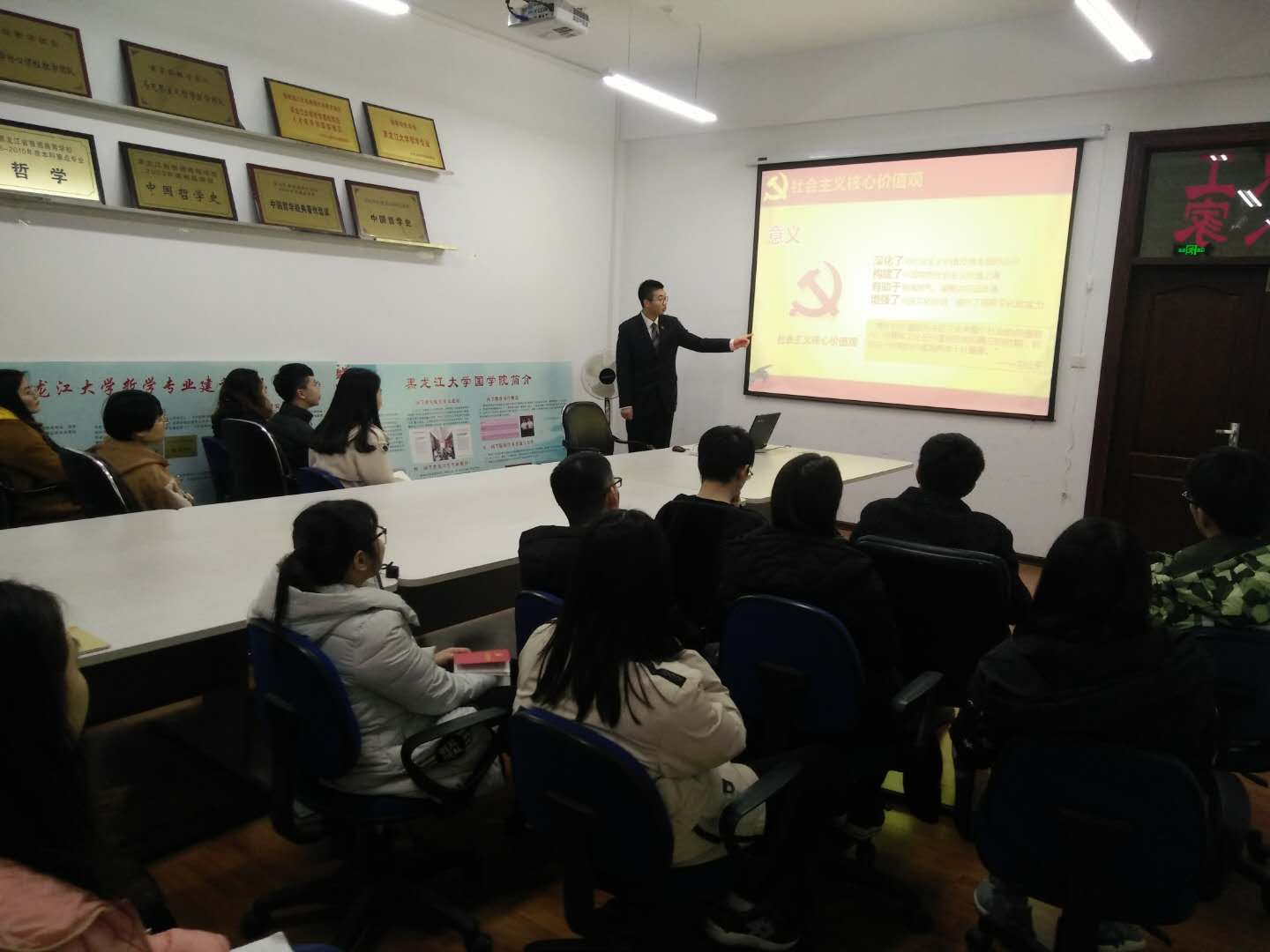 为了深入学习十九大精神,教育引导广大学生党员进一步坚定理想信念,学习领会新时代中国特色社会主义思想的深刻内涵,2017年11月4日,哲学学院于汇文楼922室面向学生党员开展了“青春跟党走 辉煌十九大”演讲比赛。学生党支部书记张博伦、学生党员、部分重点积极分子参加了本次比赛。