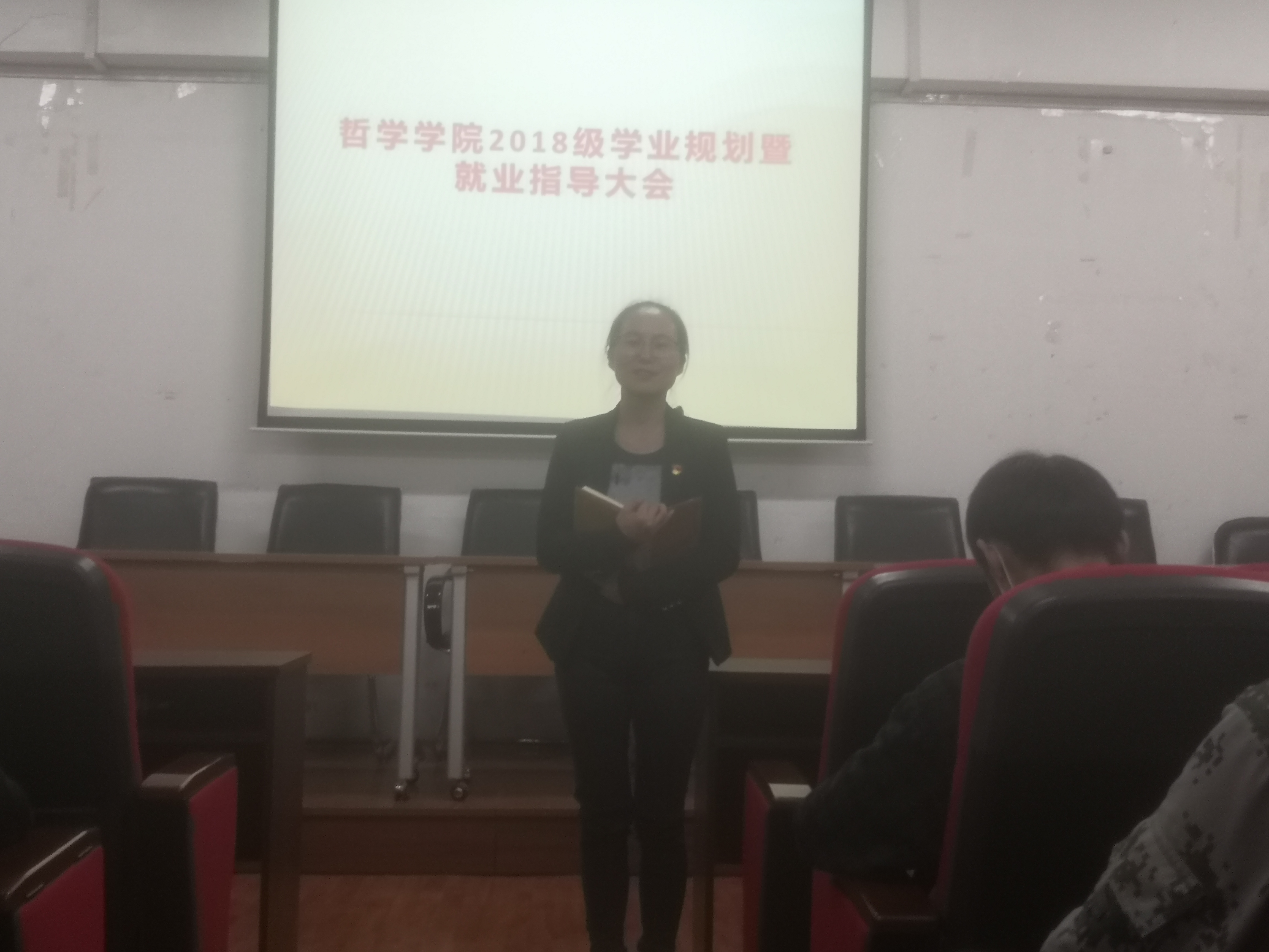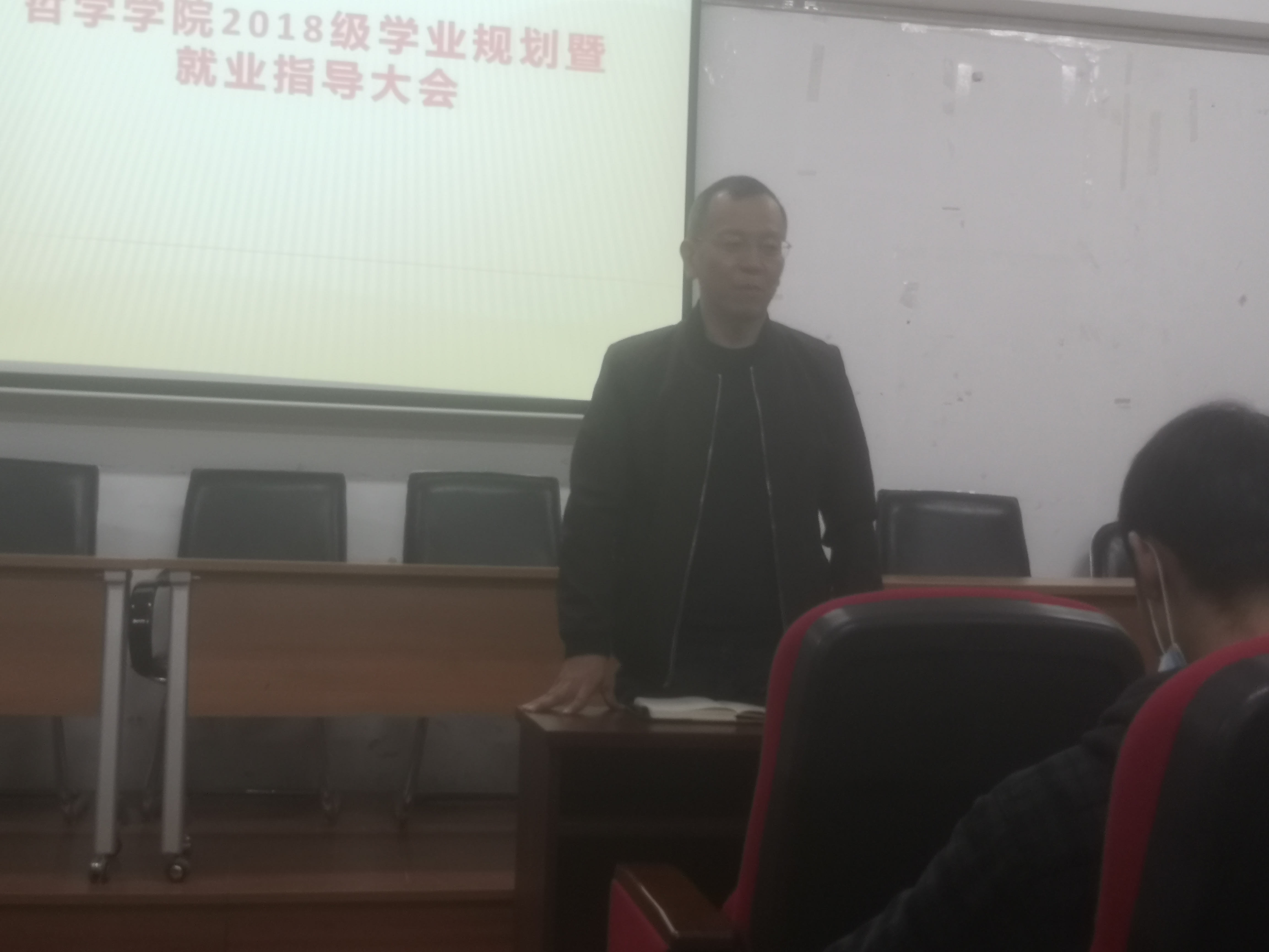 为进一步帮扶大三年级学生做好职业生涯和升学就业规划,帮助学生选择适合自身发展的方向与目标,哲学学院于2020年9月28日在汇文楼937会议室召开2018级学生学业规划及就业指导大会。哲学学院正处级辅导员孙庆斌、2018级学业导师黄影、2018级辅导员张博伦出席,2018级全体学生参加会议。