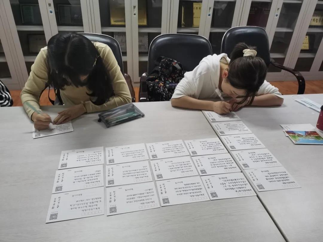 高年级学长学姐为2020级学弟学妹手写“暖心”明信片。明信片为黑大主题定制明信片,正面为黑大主要标志性建筑及景物,背面为学院在校年级学生撰写的祝福与寄语,有助于帮助 2020级新生进一步了解校史校情,熟悉校园环境,提升2020级新生爱校荣校观念。