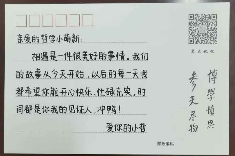 为了扎实做好2020级迎新服务工作和新生入学教育系列工作,哲学学院高度重视,积极组织在校年级开展多项迎新特色工作,组织开展“学长学姐为新生手书明信片”活动。