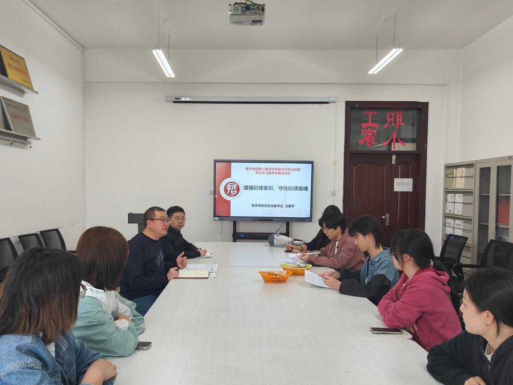 为深入学习贯彻习近平新时代中国特色社会主义思想,进一步学习宣传贯彻党的二十大精神,全面贯彻落实习近平总书记视察黑龙江省期间的重要讲话重要指示精神,深入开展党纪学习教育,夯实学生党员先锋工程,引导广大学生党员进一步发挥先锋模范作用,激发爱党、爱国、爱校情怀,按照校学生工作部《关于举办第43期学生预备党员培训班暨党纪学习教育专题培训班的通知》要求,哲学学院于4月22日至4月29日期间举办第43期学生预备党员培训暨党纪学习教育专题培训班。