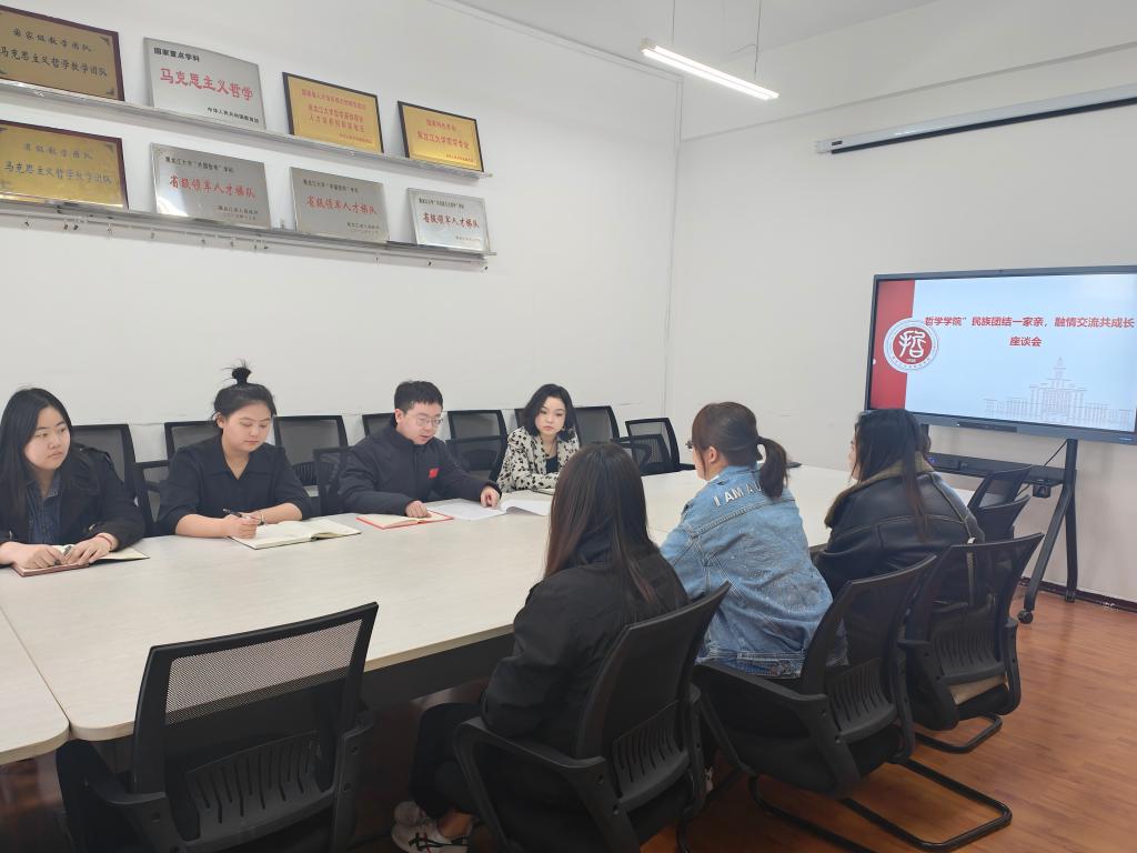 为进一步加强民族团结进步教育,铸牢中华民族共同体意识,促进各民族学生交往交流交融,按照学生工作部要求,哲学学院于2024年4月12日召开2024年春季学期“民族团结一家亲,融情交流共成长”主题座谈会。校学生工作部少数民族事务科阿胡、哲学学院辅导员张博伦、赵慧雪以及学院少数民族学生代表参加会议。