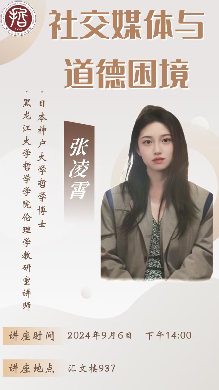 如何在道德选择中守住底线,不仅关乎个人操守,更影响职业生涯的发展道路。哲学学院张凌霄老师于9月6日下午在汇文楼937会议室开展了“哲学与生涯成长”系列主题教育培训之《社交媒体与道德困境》专题讲座,哲学学院2024级全体本科生参加。