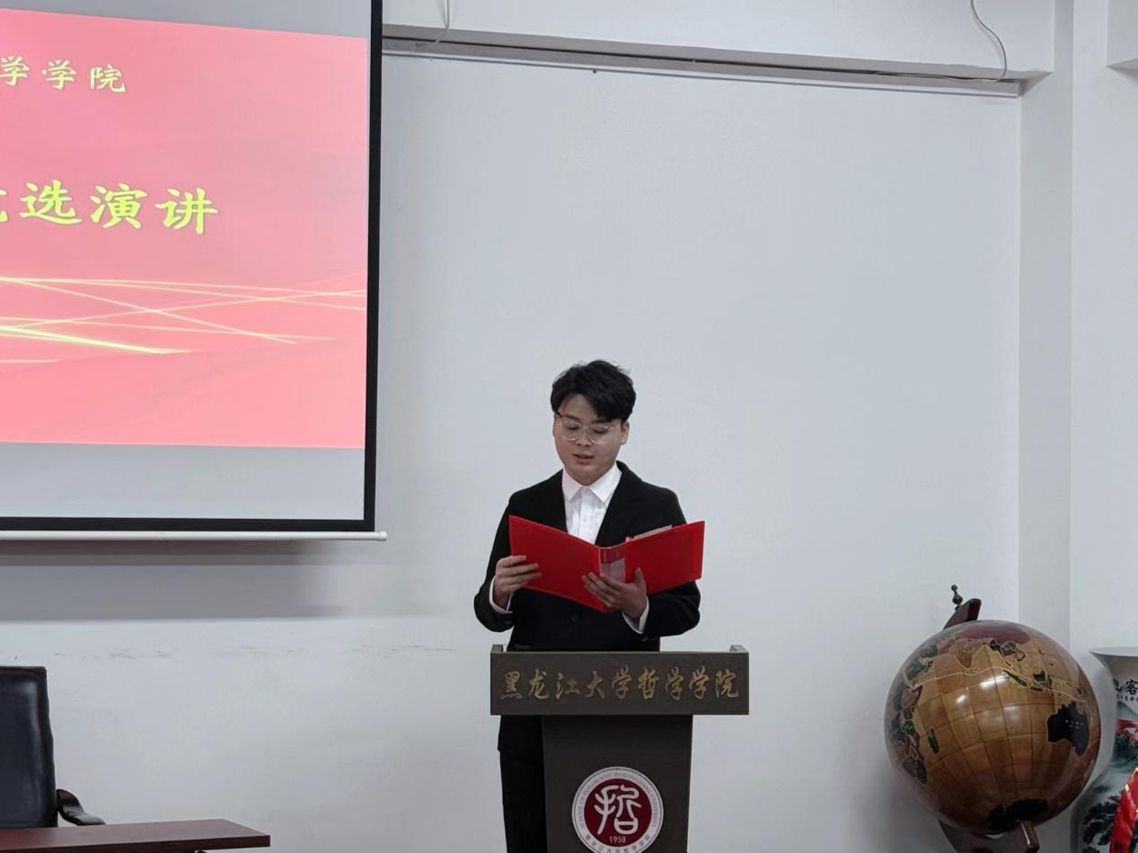哲学学院第一届研究生会主席团候选人发表竞选演讲。
