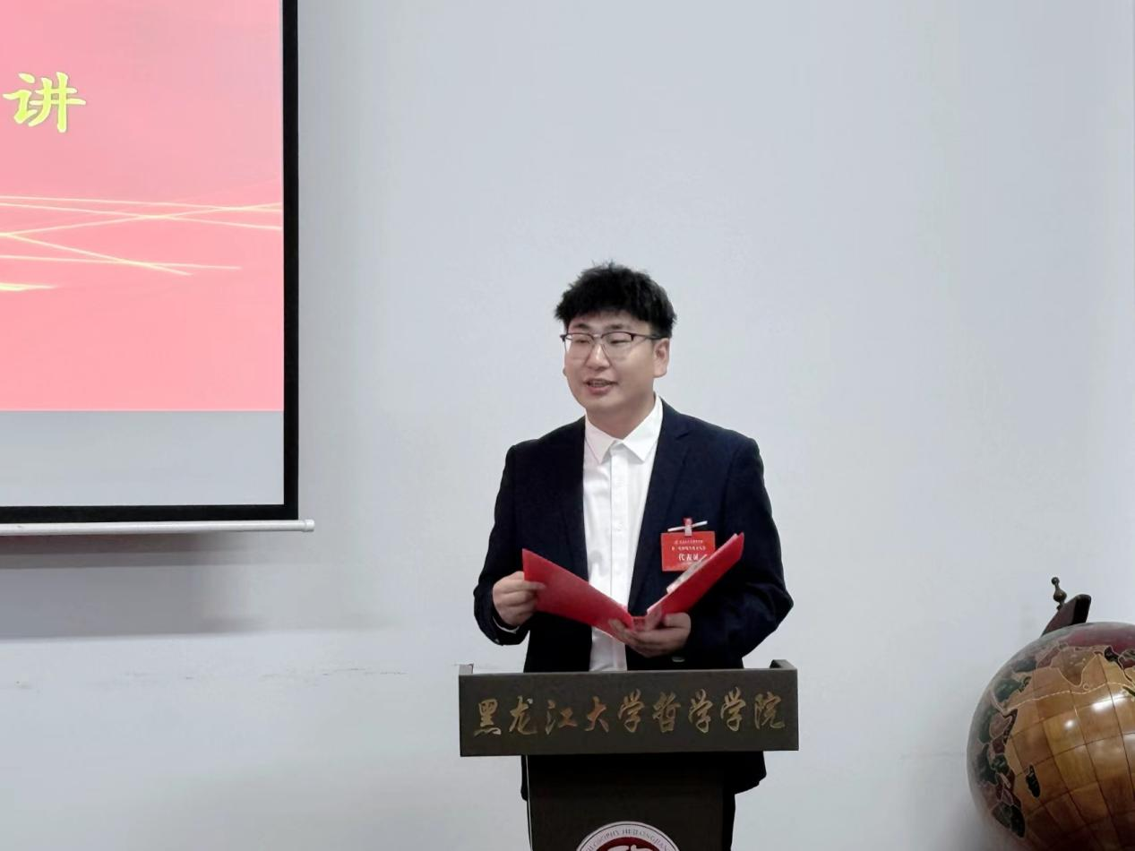 新当选的哲学学院第一届研究生会主席代表发言。