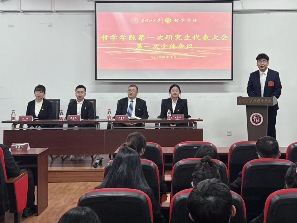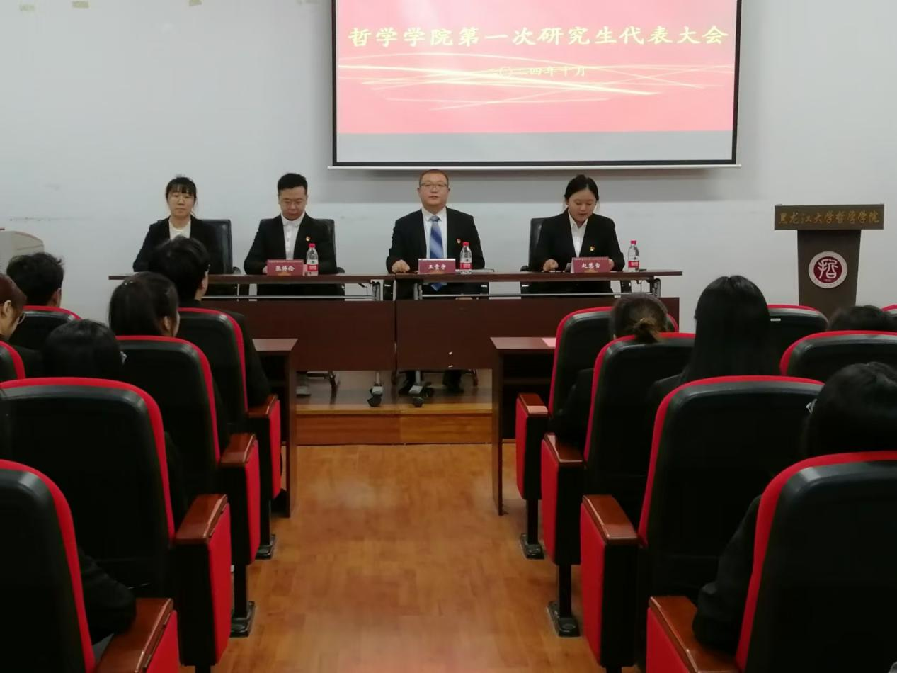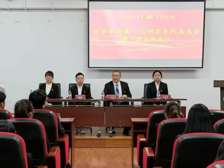 为认真学习贯彻习近平总书记关于青年学生工作的重要思想,进一步强化研究生二级管理体系下我院研究生的教育、管理与服务工作。哲学学院于10月15日在汇文楼937召开首届研究生代表大会。哲学学院党总支副书记王贵宇、团委书记张博伦、团委副书记焦瑞、赵慧雪及研究生代表出席本次大会。会议由团委副书记赵慧雪老师主持。
