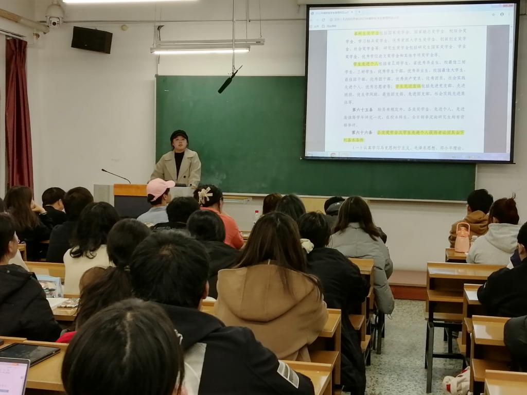 会上赵慧雪老师带领同学们主要解读了《欧亿体育·(中国)官方网站学生管理规定》,着重对学生纪律处分、学生素质综合测评、综合素质评价、学业预警、奖优评定、学生公寓管理等方面展开详细解读。