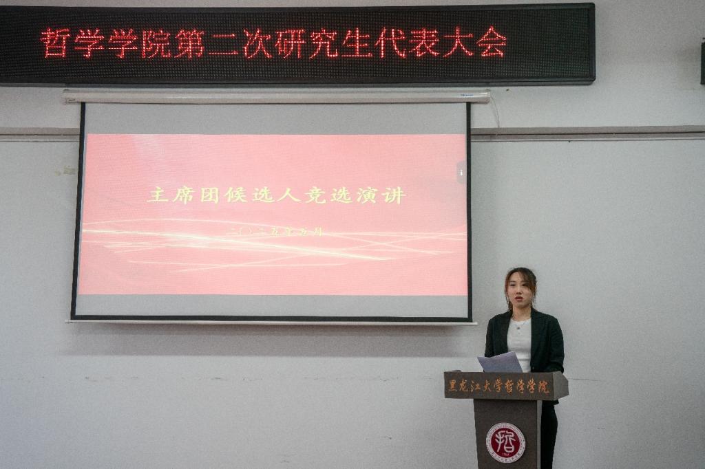 接下来,哲学学院第二届研究生会主席团五位竞选人根据抽签顺序发表竞选演讲。