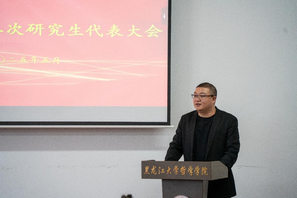 最后,哲学学院党委副书记王贵宇对本次会议进行总结,他充分肯定研究生二级管理一年来研究生会的工作成果,对第一届研究生会成员的担当与奉献表达了感谢。他也勉励新成员要传承初心,以服务同学为己任,勇担使命,在学术与实践中展现哲学人的担当,谱写青春新篇章。