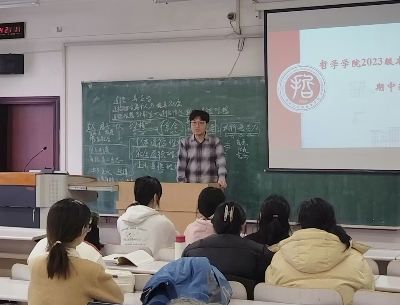 为加强哲学学院学风建设,促进师生深度交流,哲学学院2023级本科1班(基础学科拔尖人才培养计划实施班级)于2024年11月27日召开秋季学期期中班会。