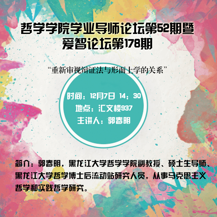 哲学学院学业导师论坛第52期暨爱智论坛第178期