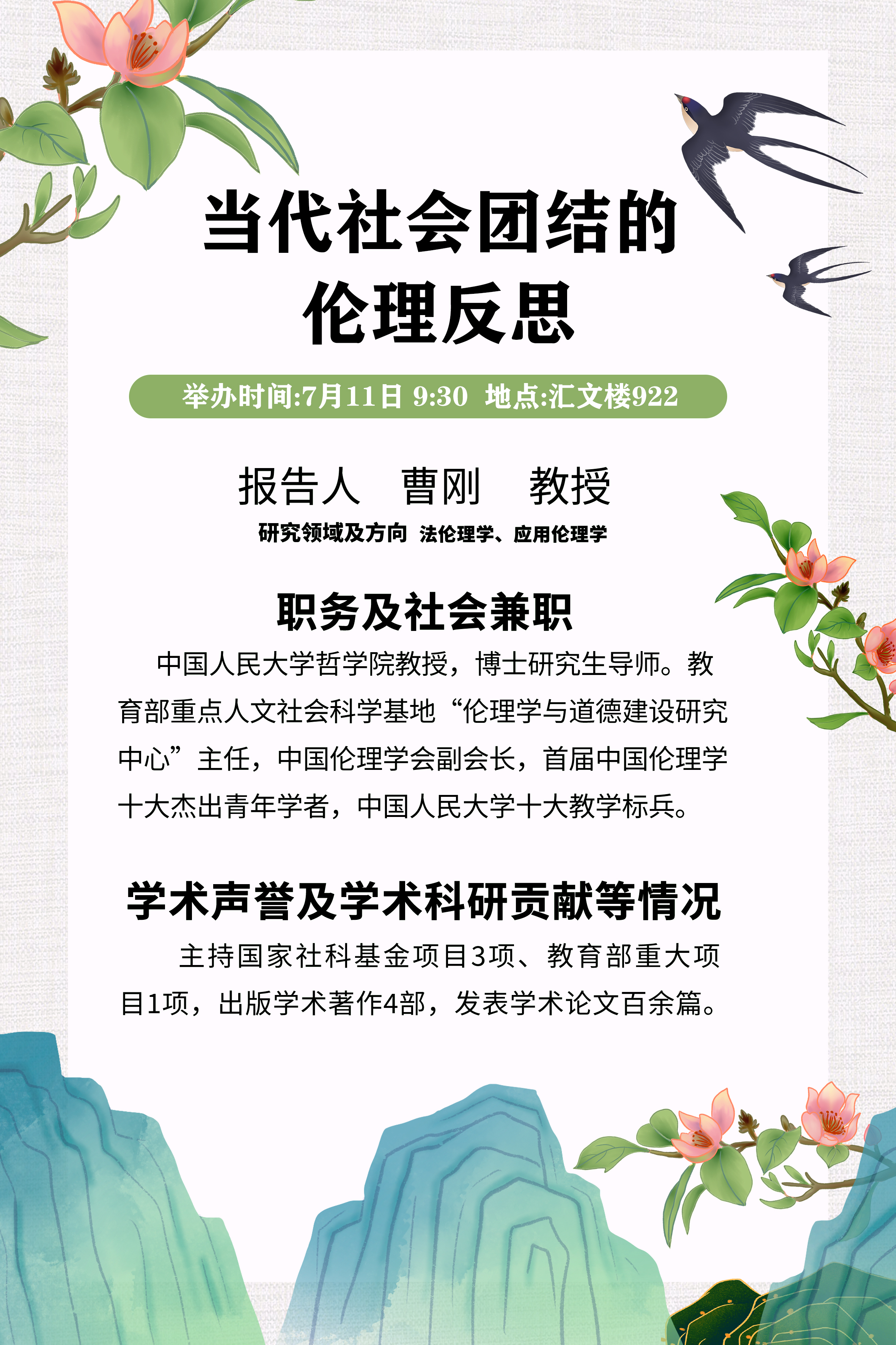 迎校庆“百大名家进校园”系列讲座:哲学学院爱智论坛第254期