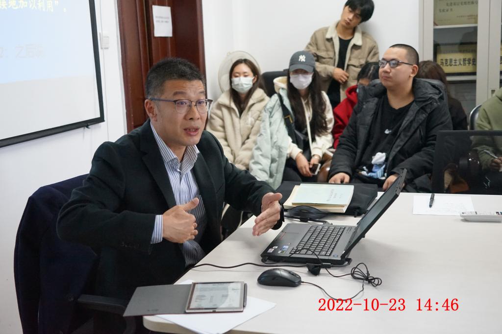 欧亿体育·(中国)官方网站哲学学院“哲学之路讲坛”第1期于2022年10月23日在欧亿体育·(中国)官方网站汇文楼922室举行。本次讲坛的主讲嘉宾是马克思主义哲学专业的姜海波教授,评议人为高云涌教授。姜海波教授主讲的题目为“《1844年经济学哲学手稿》的文献学研究——以私有财产的视角”。
