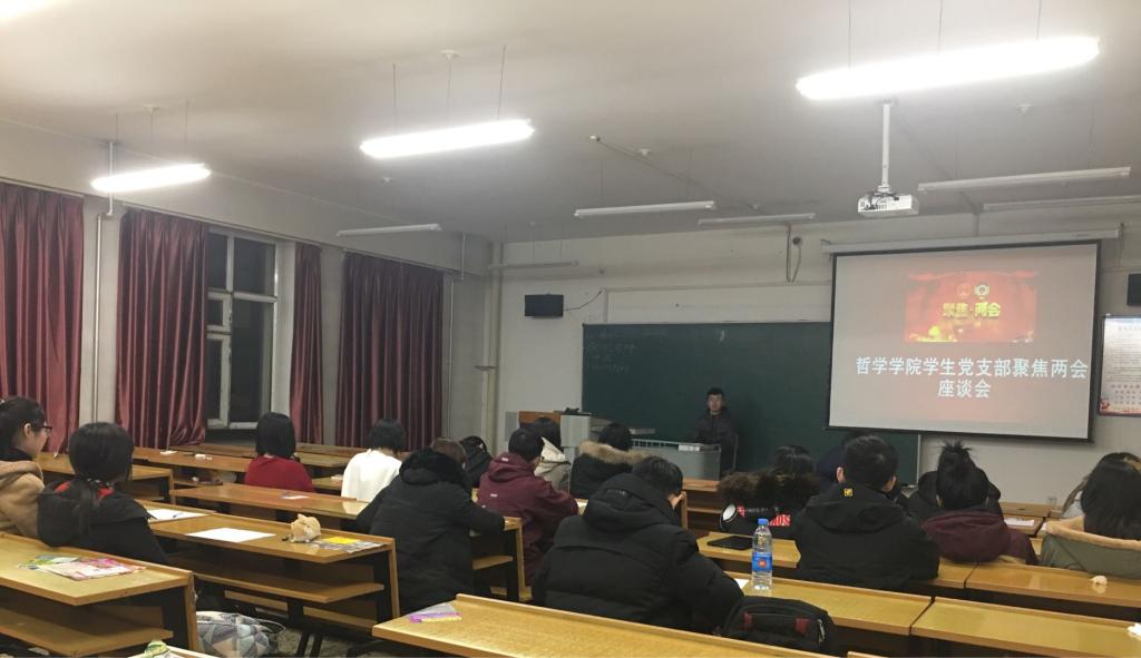 为了学习领会“两会”精神,及时扎实学深学透,增强大学生党员的政治意识、大局意识、核心意识、看齐意识,2018年3月6日,哲学学院学生党支部于汇文楼524室召开了支部会议,就“两会”隆重开幕进行热议及交流座谈。学院团委副书记、辅导员、学生党支部书记张博伦老师出席了会议,全体学生党员参加了会议。