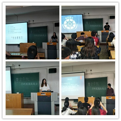 为了进一步加强学风建设,促进学生对考研信息的了解,激发学生的学习兴趣,2018年5月18日18时,哲学学院考研经验分享会于汇文楼519室举办。担任主讲嘉宾的是学院2014级部分保研、考研成绩优异的同学,各年级同学踊跃参加。