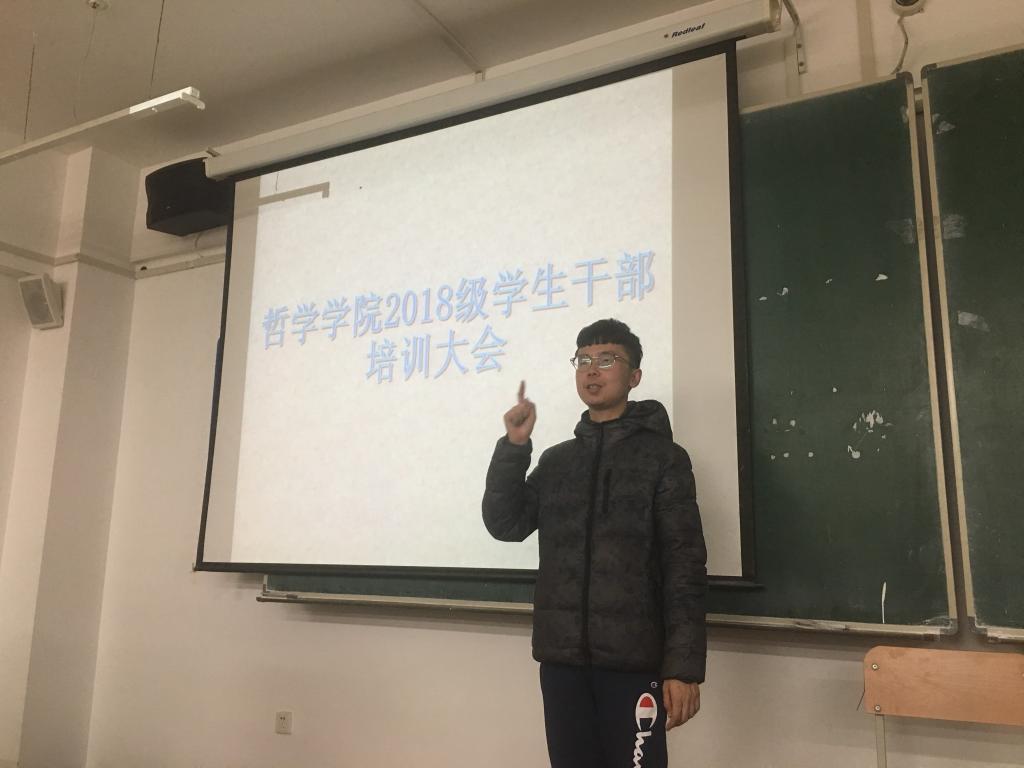 为使2018级学生干部能够尽快的熟悉班级和团支部工作,进一步提高自身素质,更好的为同学们服务,发挥学生干部先锋模范作用。2018年10月17日15:30,哲学学院2018级学生干部培训大会在汇文楼召开。哲学学院2018级辅导员张博伦老师主持会议,哲学学院2018级全体班委会干部和团支部干部参加了本次培训。