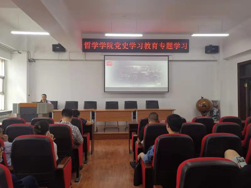 为进一步深入推进党史学习教育,哲学学院于2021年6月16日组织全体教工党员开展了集中学习。学习过程中,全体党员共同观看了《一百堂党史课》中《革命理想高于天》、《甘祖昌龚全珍夫妇》、《英特纳雄耐尔一定要实现》、《焦裕禄精神》、《永不叛党》五部分视频。
