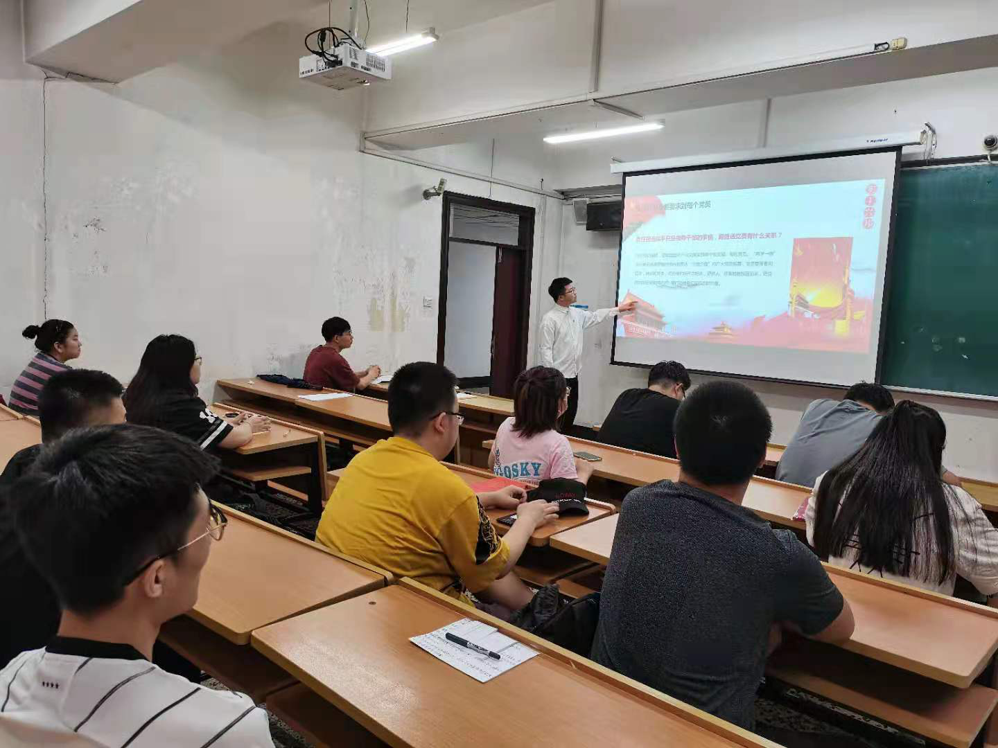 7月7日,教工第一党支部书记刘振怡、第二党支部书记雷震、行政党支部书记黄影分别以《习近平总书记“七一”重要讲话的精髓》、《从五十多人到九千多万人——以“其作始也简,其将毕也必巨”解析》、《重温<入党誓词> 永远忠诚于党》为题面向所在支部党员做了专题党课,讲述党的光荣历史和优良传统,号召全体党员将先锋模范作用落实到具体的行动中,在各自的岗位上切实做到为党分忧、为国尽责、为民奉献。