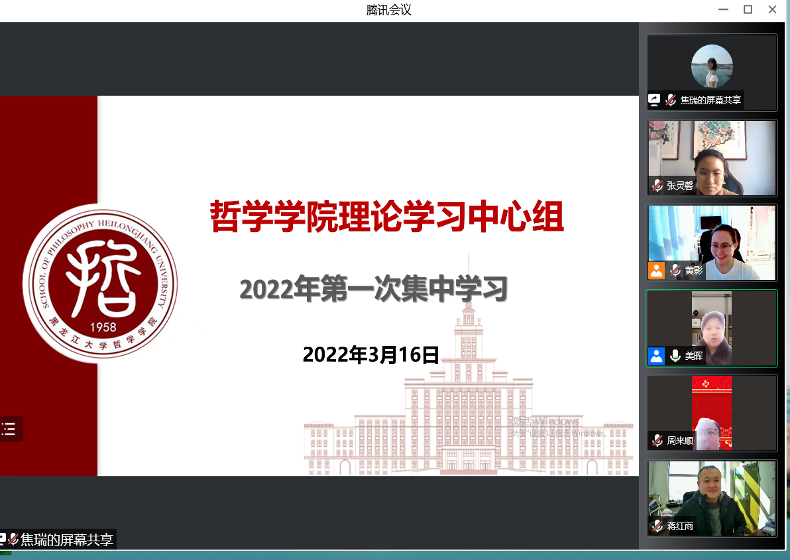 2022年3月16日,哲学学院党总支在云端召开理论中心组扩大学习会。会议由学院党总支书记孙美晖主持,学院党总支成员,领导班子全体,各党支部书记、支委参加了会议。